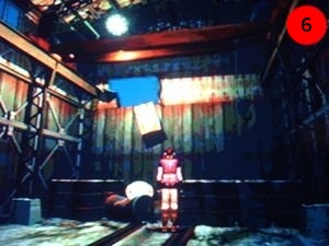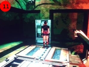 au mur. Descendez avec le monte-charge qui se trouve au bout de la passerelle ( image 7 ).