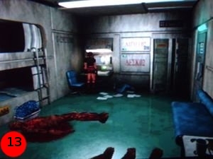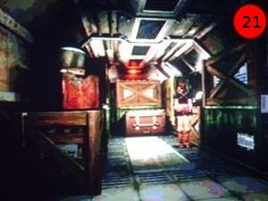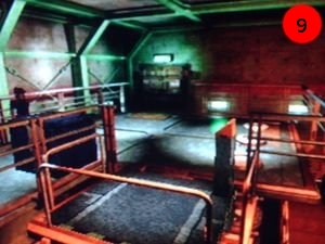 Longez la petite passerelle et passez la porte. Vous arrivez dans la salle des moniteurs de surveillance