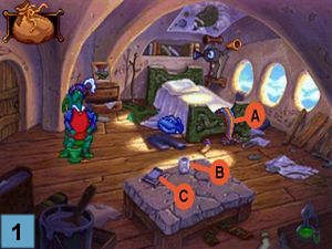 Prenez un haricot magique ( image 9-B ) et ouvrez la porte en bois pour arriver dans le cabinet du Dr.