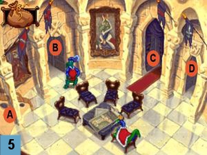 la droite de l'écran ( image 5-D ) pour arriver dans le couloir des chambres royales. Passez par