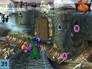 Descendez les escaliers ( image 34-A ) pour arriver dans le laboratoire de Mervin le magicien.