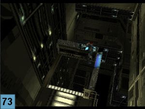 Retournez dans le poste de commande de Tri-Energie (G10). Actionnez à nouveau le terminal de commande qui se trouve sur la colonne centrale pour rétablir l'alimenttion du générateur (image 71). Retournez dans la zone de Tri-Energie B2 (G9). Allez à l'autre bout de la salle (vers les deux portes), puis à droite pour trouver un élévateur (image 73). Appuyez sur le bouton pour descendre dans la zone de Tri-Energie B3 (F19). Avancez pour arriver devant l'emplacement de l'initializor (image 74). Appuyez sur le bouton vert et mettez l'initializor.