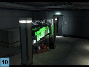 Allez à droite et ouvrez la porte grise pour arriver au Poste de Commande du Grand Ascenseur (D3). Une scène s'actionne, vous venez de retrouver Tom. A la fin de la scène il vous donne le Disque L Code DDK. Prenez le Disque L Input DDK derrière vous (image 1) et empruntez la porte coulissante pour arriver dans les vestiaires. Mémorisez le plan de l'extérieur accroché au mur et ouvrez la nouvelle porte pour arriver au Passage vers le Poste Electrique (D4).