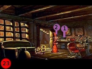 Allez chez le coiffeur. Prenez le petit livre sur le meuble en haut à droite ( image23 point 1 )