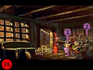 Une scène s'actionne, Sally fait goûter à Rincevent la crème quelle prépare. Après la scène,
