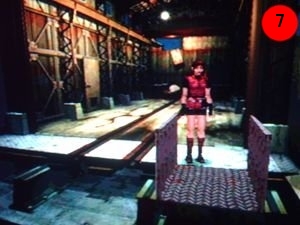 au mur. Descendez avec le monte-charge qui se trouve au bout de la passerelle ( image 7 ).