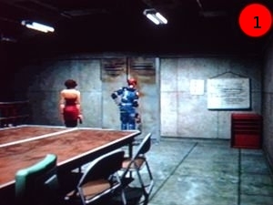 Une scène s'actionne, vous arrivez à une salle du coffre ( L1 ). Prenez le spray désinfect dans