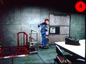 dans le couloir par lequel vous êtes arrivé. Retournez à la salle des moniteurs et mettez dans le coffre les