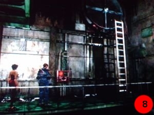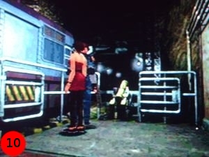 et ouvrez la porte. Suivez la maman de Sherry à gauche et montez l'échelle, longez le conduit en zigzaguant
