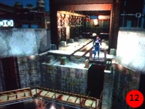 Descendez l'echelle pour arriver à un petit entrepôt ( J2 ). Esquivez le zombie qui se trouve