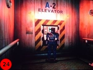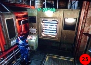 Prenez le 2ème monte-charge pour arriver à la salle du coffre de la salle de contrôle 1 ( I2 ).