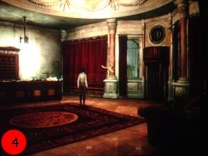 Retournez à l'entrée de l'hotel et allez ouvrir les rideaux rouges qui se trouvent à la gauche de l'entrée