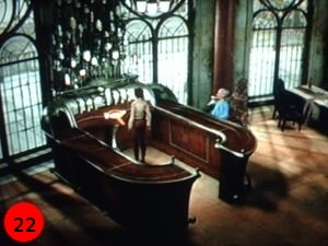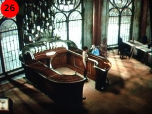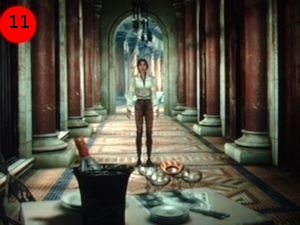 de l'écran pour y trouver au fond une table avec 4 coupes en cristal ( image 11 ).