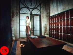 Retournez au restaurant et allez vers la porte fermée avec la machine à code ( image 9 ).