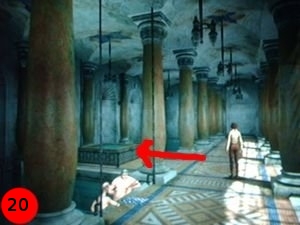 Passez la double porte pour arriver à la salle des bains. Allez dans l'ouverture qui se trouve à