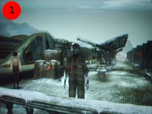Ouvrez la porte qui mène vers la jetée mais ne prenez pas le masque à gaz car il neige,