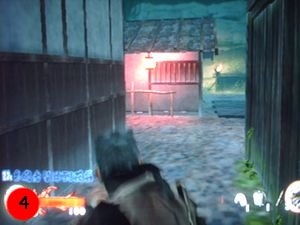le mur de gauche pour apercevoir un mort vivant faire sa ronde, éliminez-le dès qu'il à le dos tourné.